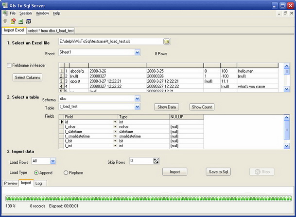 軟體簡介:XlsToSql是一款將EXCEL資料導入到SQL資料庫的工具軟體。